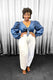 Women piece pant set. Set includes: 1 blouse. 1 pant 1 head scarf. Blouse has elastic in waist Pant has wide palazzo legs, elastic waist & flat side knee pockets. Long ankle length. Measures 41" 100% wax cotton. One size (fits most M to 2XL)Color:brown